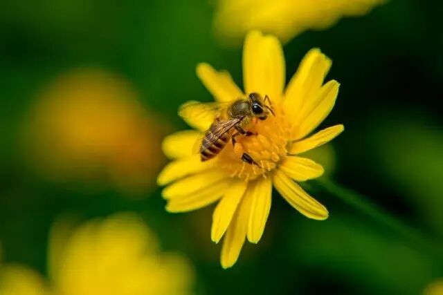 而壮年工蜂就正式成为采集蜂了,也是工蜂中的中坚力量,主要采集花蜜、花粉、树胶、水等。越冬后的老年蜂主要从事搜寻蜜源、采水等工作。工蜂从幼到老,一直都有自己的职责与使命,不为利与为名,只考虑家族的繁衍生息。