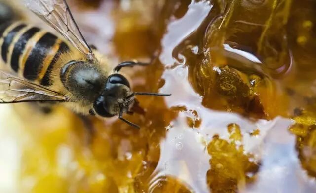 蜜蜂的蜜囊和口器就是一个“加工车间”,它们把花蜜不断地吸进又吐出,同时将唾液腺分泌的转化酶和花蜜混合,使花蜜中的蔗糖不断地被分解成单糖——果糖和葡萄糖。